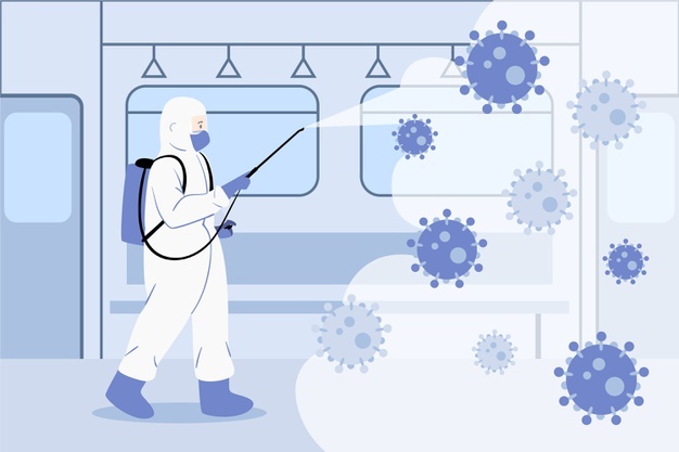 Aplicación por método de aspersión, nebulización en frío o termonebulización de un producto químico en las instalaciones, cubriendo superficies, áreas de trabajo, zonas concurridas, áreas de tránsito común, etc.